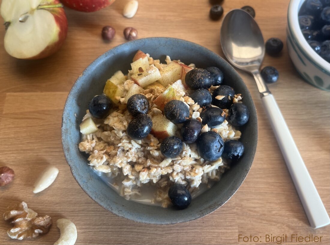 - Haferflocken mit (pflanzlicher) Milch/Wasser übergießen