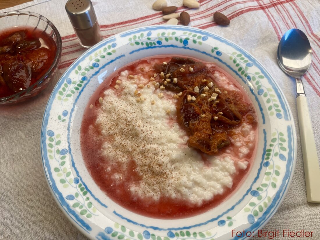 - entweder ca 25 Minuten auf kleiner Hitze ausquellen lassen und dabei oft umrühren – oder die Ab-ins-Bett-Methode anwenden (Topf in ein Tuch/eine Thermotasche und für ca 2h unter die doppelt gelegte Bettdecke)
